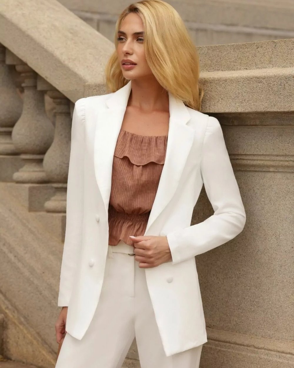 Blazer Em Alfaiataria Manga Bufante Doce Flor Composição