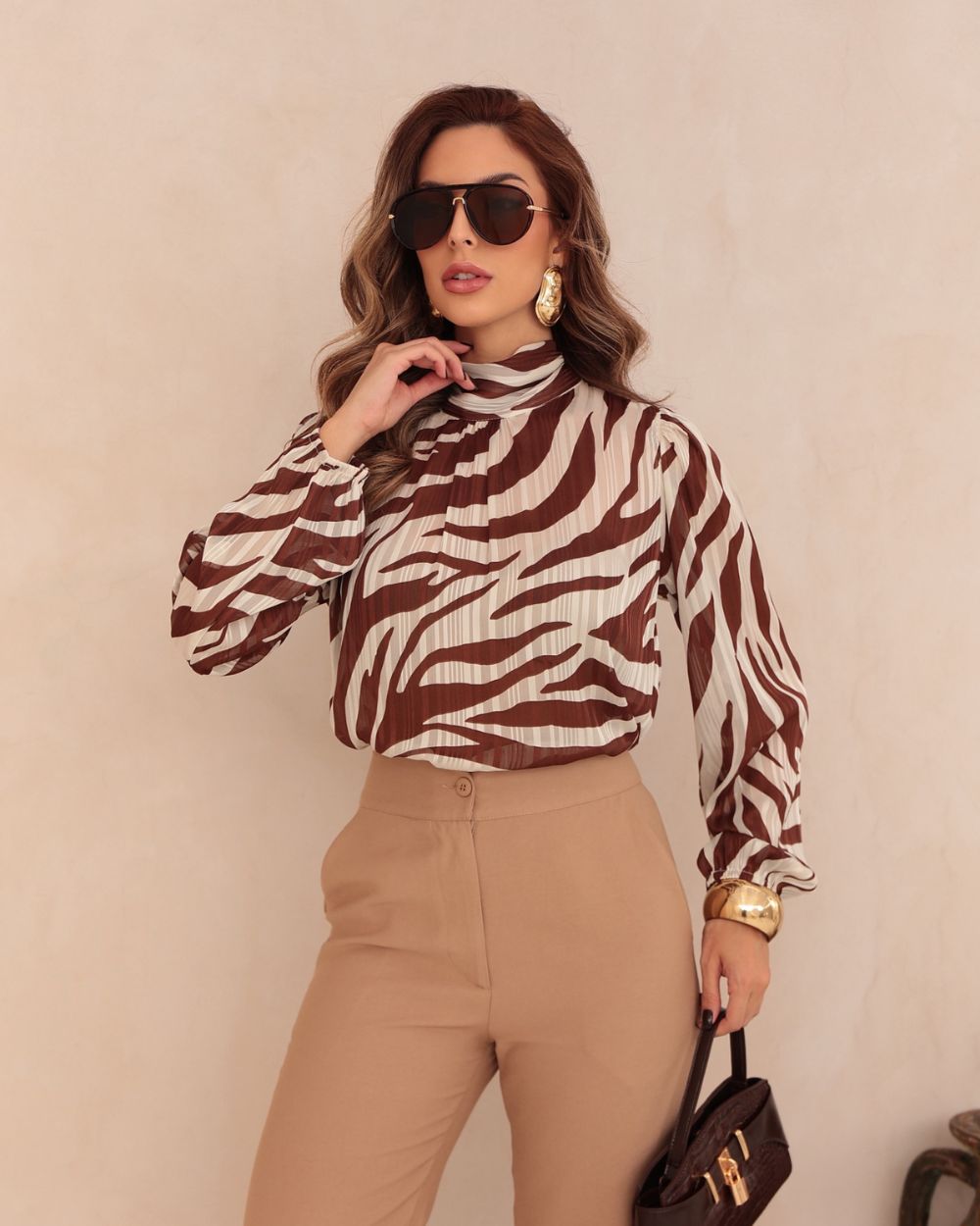 Blusa Chiffon Manga Longa Zebra Composição