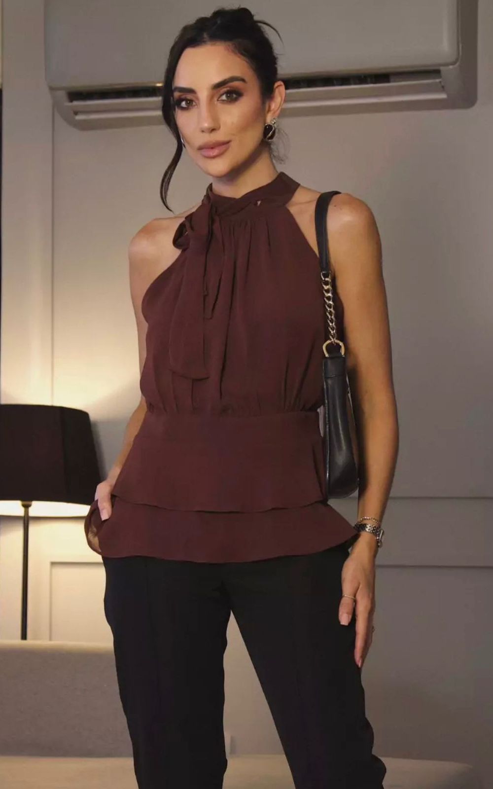 Blusa Em Crepe Com Peplum Decote Amarração Tamanho E Medida