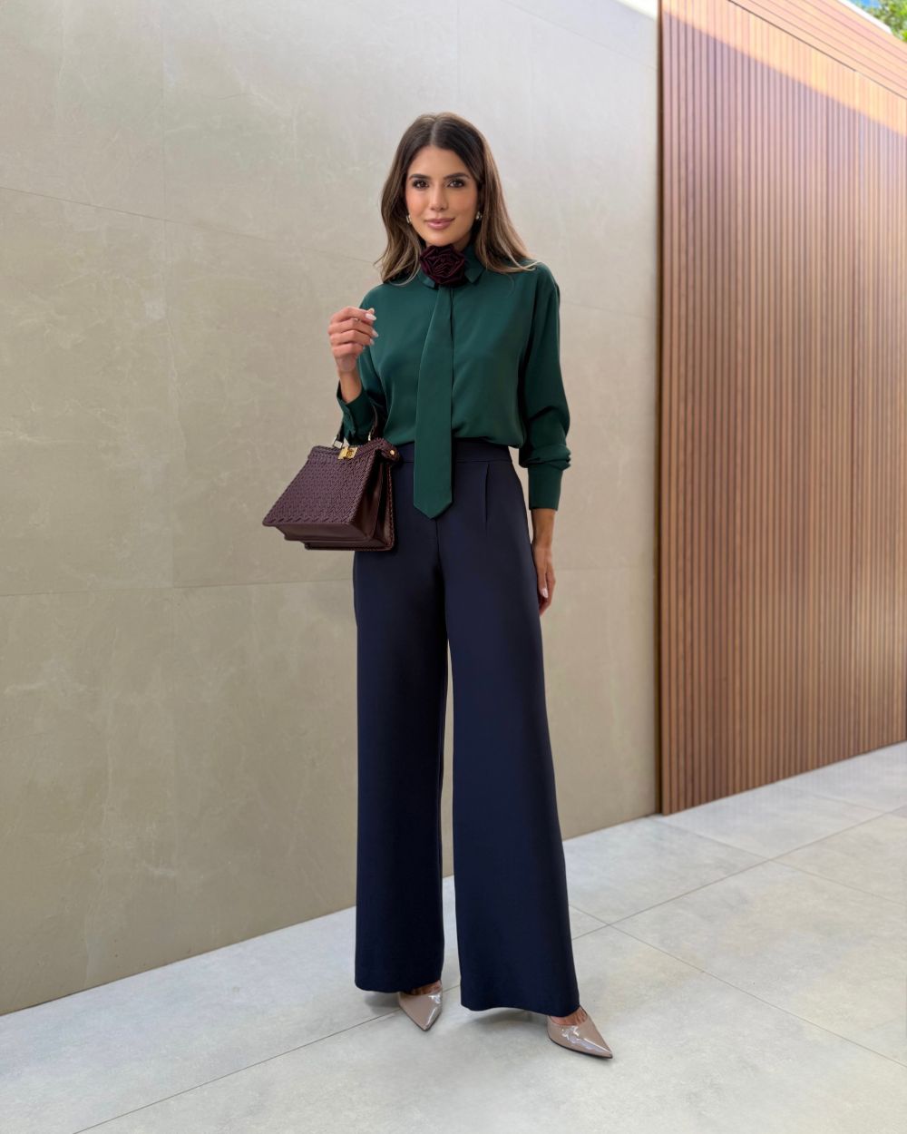 Calça Alfaiataria Reta Botão Forrado Doce Flor, calça confeccionada em alfaiataria macio de toque suave, botão forrado, modelagem reta, possui detalhes com pregas, tecido encorpado dando muito caimento a peça, para deixar a peça ainda mais moderna e sofisticada.