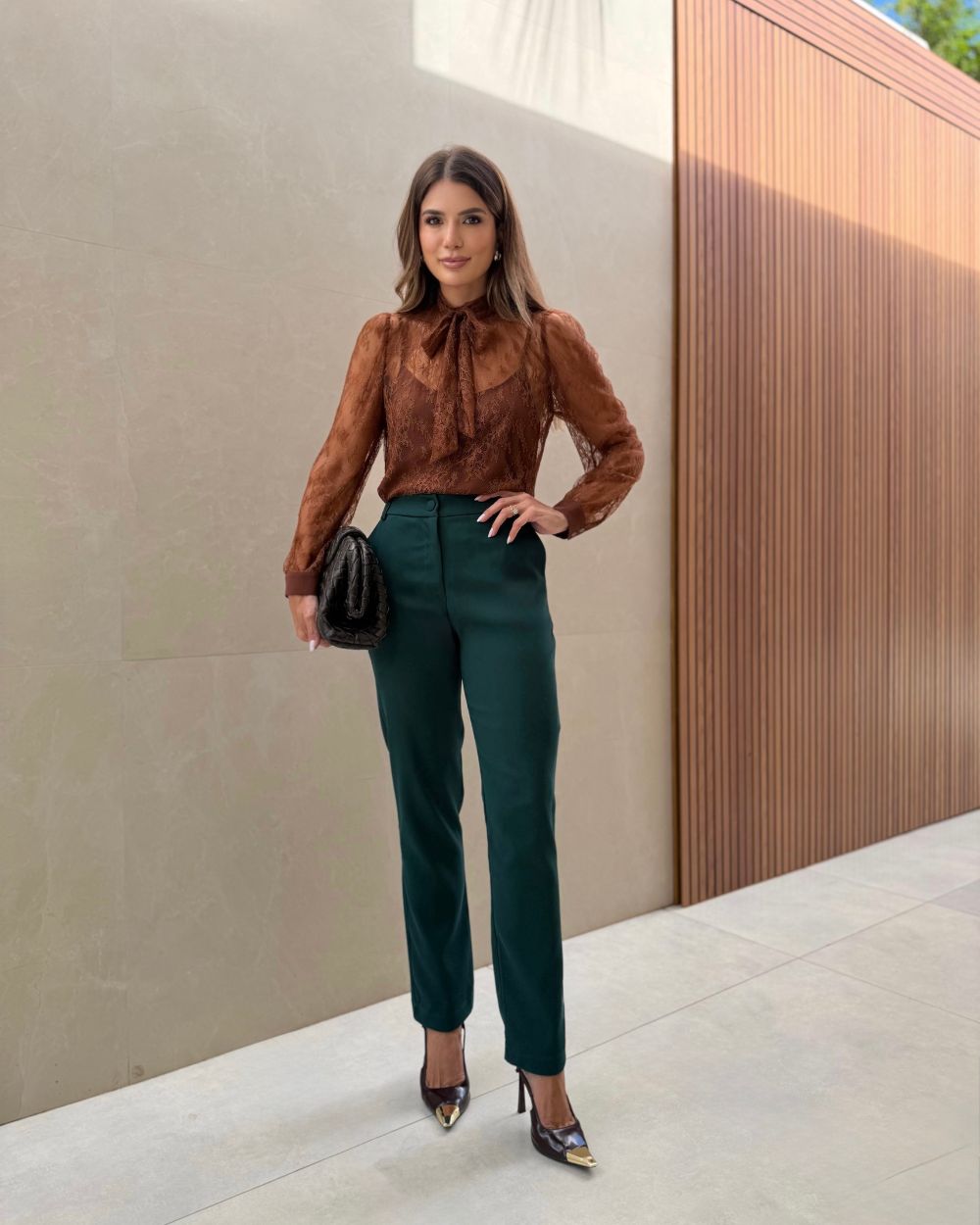 Calça Alfaiataria Twill Com Botão Forrado Doce Flor, calça confeccionada em alfaiataria macio de toque suave, botão forrado, possui passantes, possui detalhes com bolso faca, fechamento por botão e zíper, tecido encorpado dando muito caimento a peça, para deixar a peça ainda mais moderna e sofisticada.