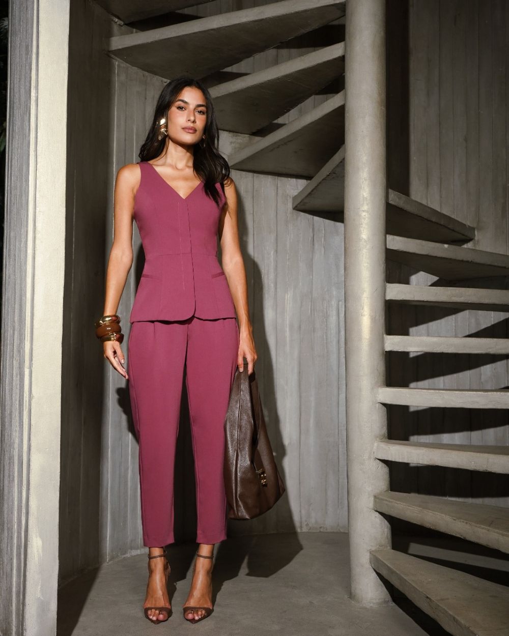Calça Cenoura Alfaiataria Cós Transpassado Donna Ritz Composição