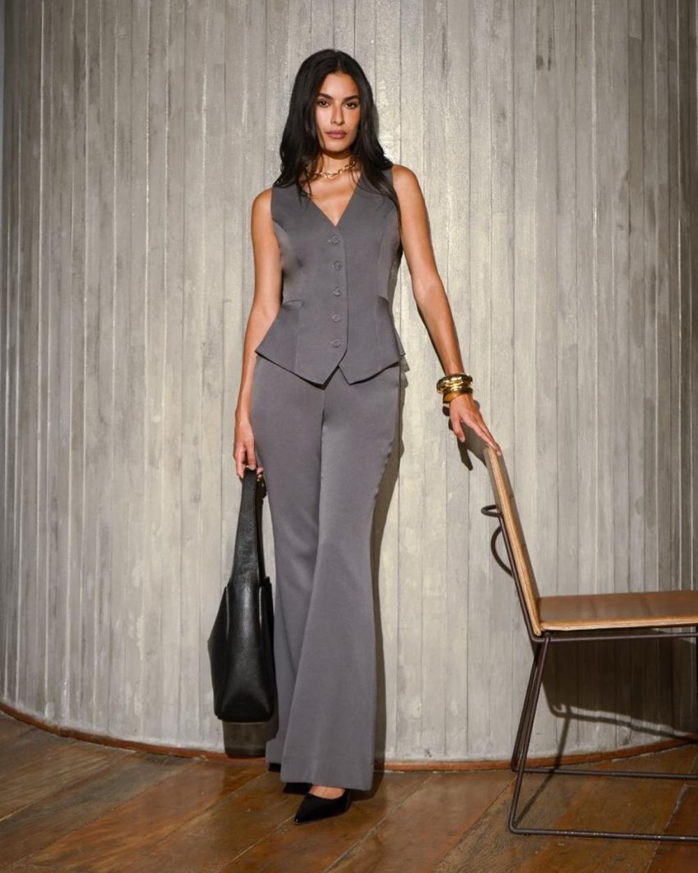 A Calça Flare Basic Donna Ritz, foi todo confeccionado em alfaiataria macio de toque suave. Possui cós alto,com passante e bolsos faca na frente. Modelagem flare. Fechamento por colchete interno e zíper de nylon , possui um caimento leve, uma peça charmosa, atual e elegante.