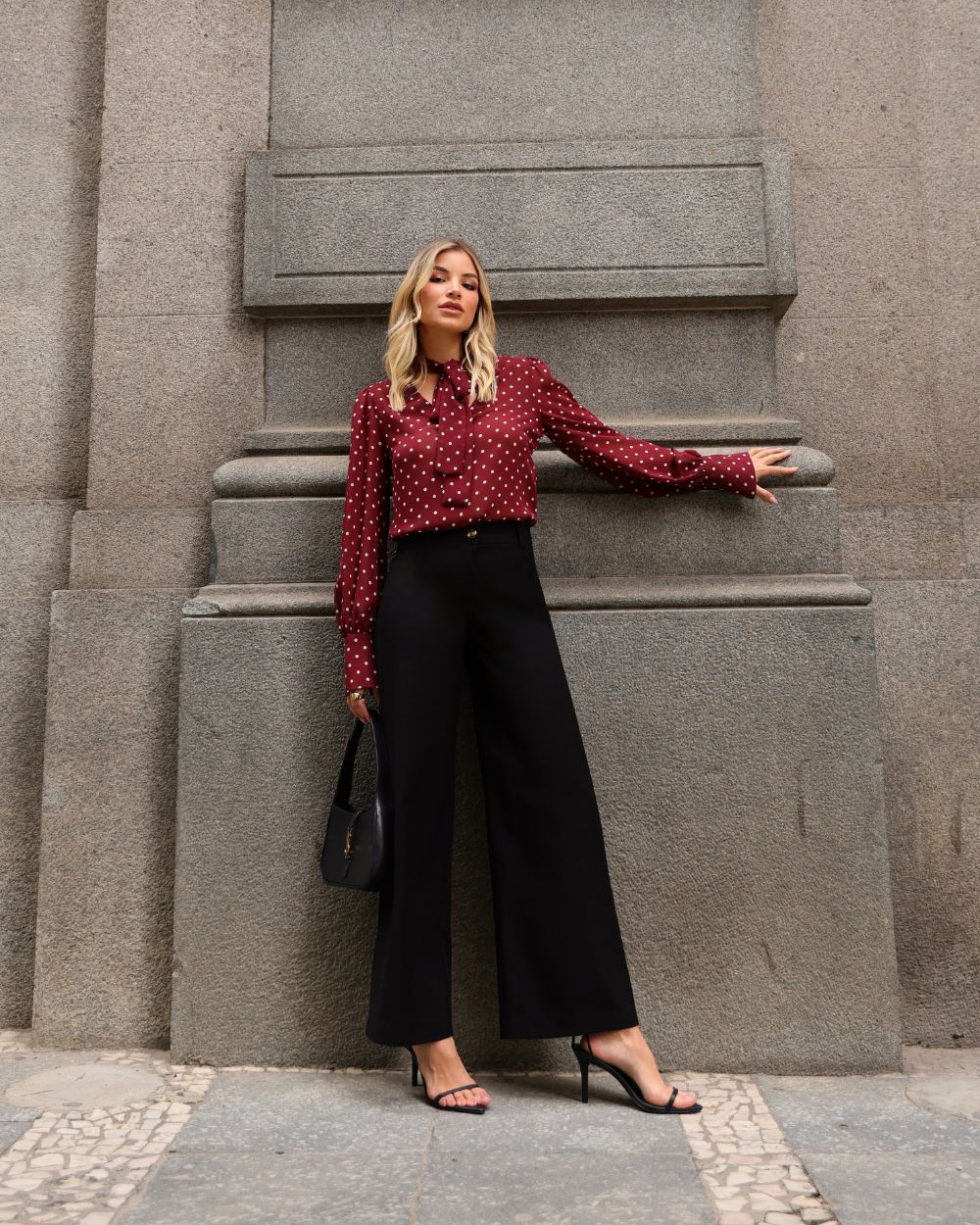 Calça Pantalona Passantes Doce Flor, foi todo confeccionado em alfaiataria mista viscose, macio de toque suave. Possui cós alto, com passantes . Modelagem Pantalona, fechamento por zíper lateral. Possui um caimento leve, uma peça charmosa, atual e elegante.