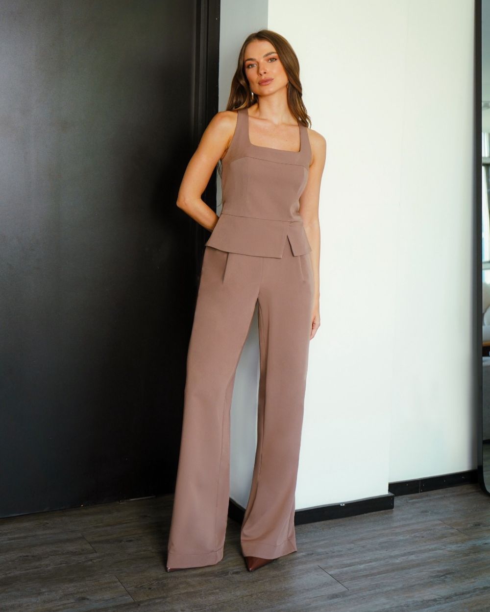 A Calça Wide Leg Em Alfaiataria Donna Ritz, calça confeccionada com tecido alfaiataria, tecido encorpado dando muito caimento a peça, calça com cintura alta, possui cós alto, bolso faca, possui detalhes com pregas. Fechamento em zíper lateral. Com forro de malha, para deixar a peça ainda mais moderna e sofisticada.