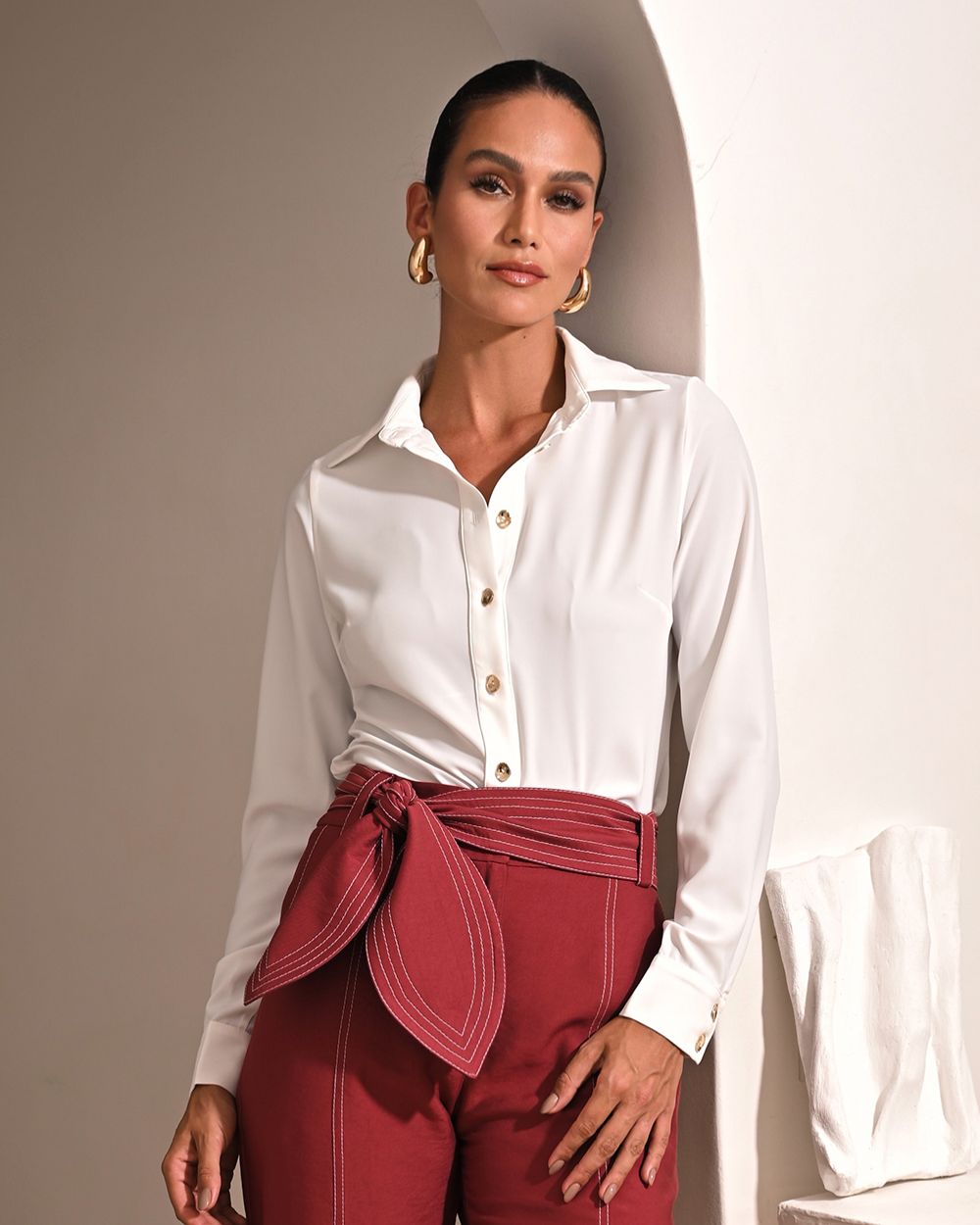 A Camisa Manga Longa Em Crepe Kesses, foi confeccionada em crepe macio e de toque suave ao corpo.Camisa de manga longa de tecido leve e fluido com botões de metal para fechamento na vista e punhos. para deixa-la ainda mais linda e elegante.