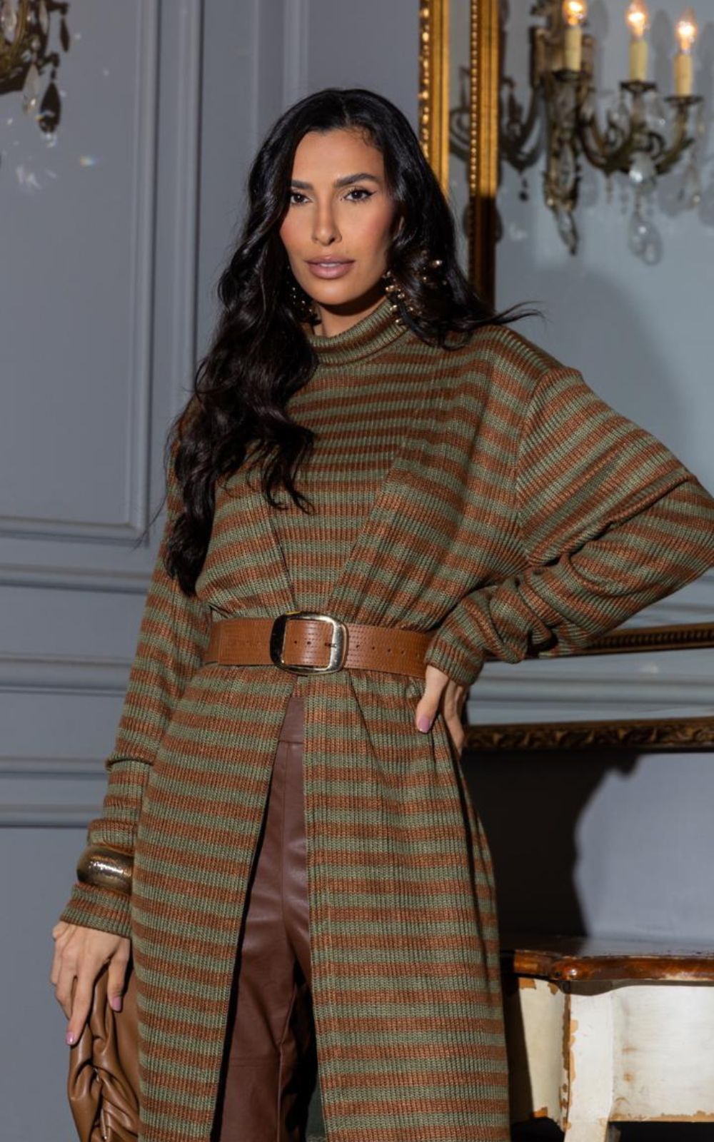 O Cardigã Tricot Listrado,, foi confeccionado em tricot, macio de toque suave ao corpo. Modelagem comprimento alongado, manga longa ampla, detalhe com listrado no marrom. Para deixa-la ainda mais lindo.