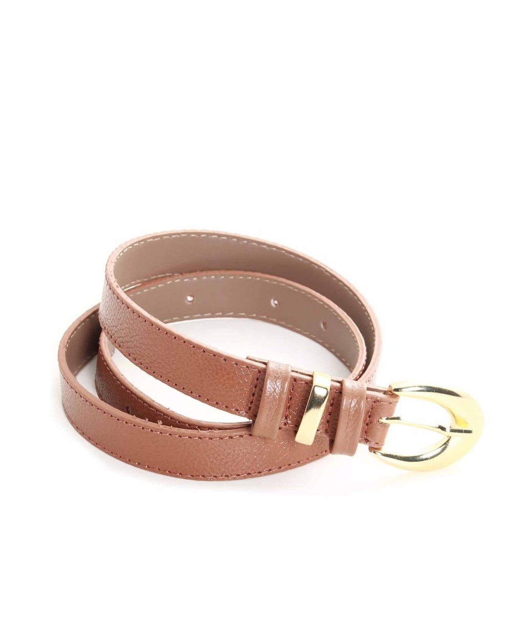Cinto Fino Três Passantes Couro Fivela Dourada Cores Composição