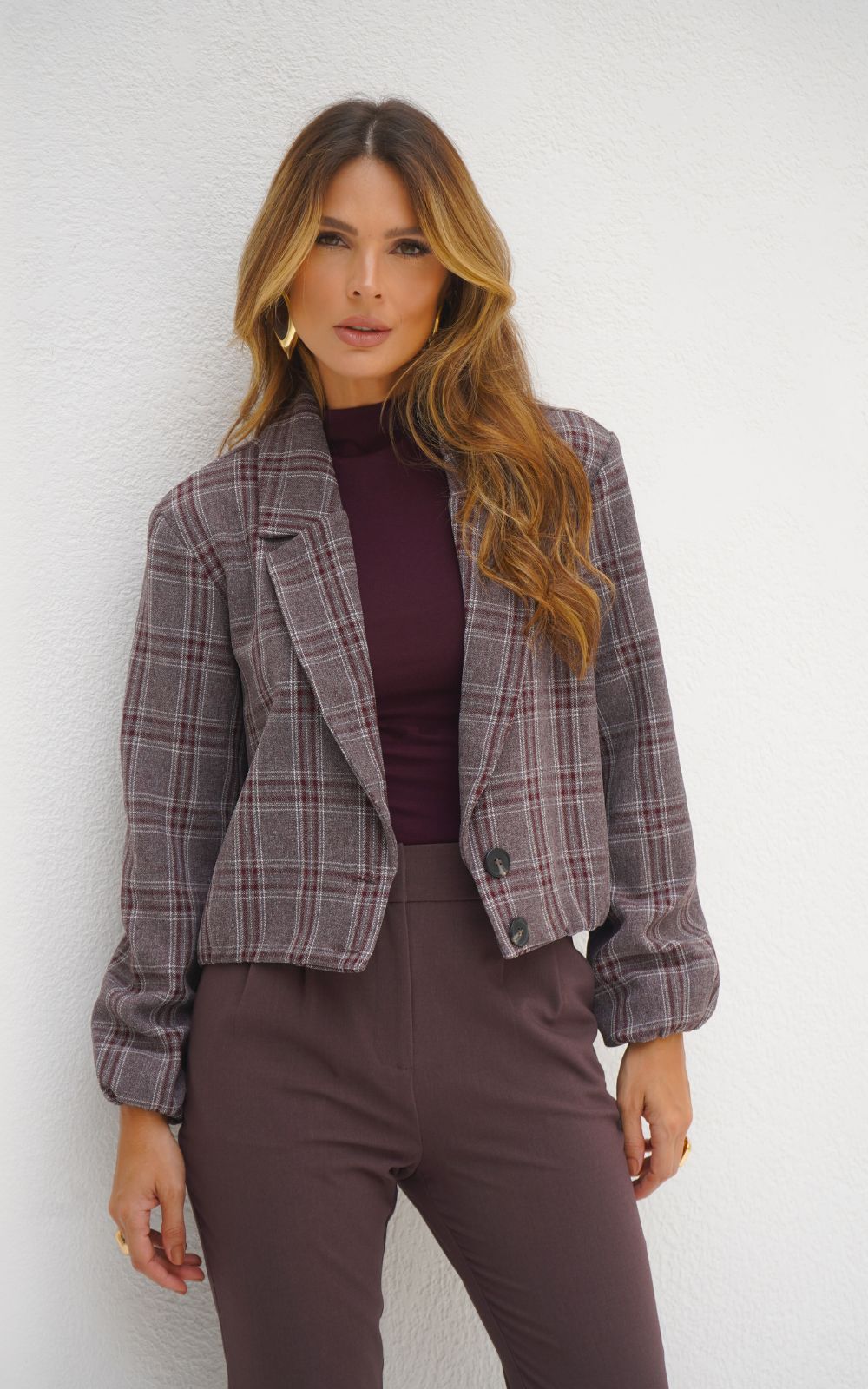 Jaqueta Bomber Em Alfaiataria Xadrez Donna Ritz, confeccionada em tecido em alfaiatara mista texturizada, possui gola blazer, 2 botões para fechamento na frente, elástico na cintura e punho, vivo na frente e corpo forrado. Linda você tem que ter uma no seu guarda roupa!