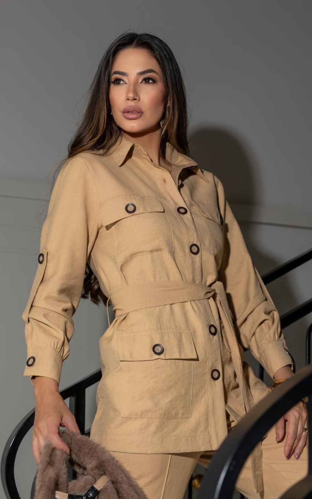 A Parka Em Alfaiataria Manga Longa Lapela e Botões foi confeccionado em Alfaiataria, Modelagem shape estruturado, levemente acinturado, valorizando a silhueta, macio de toque suave ao corpo, decote em V com gola, manga longa, bolsos utilitários, detalhes com lapela, e fechamento frontal por botões, Para deixa-la ainda mais lindo.