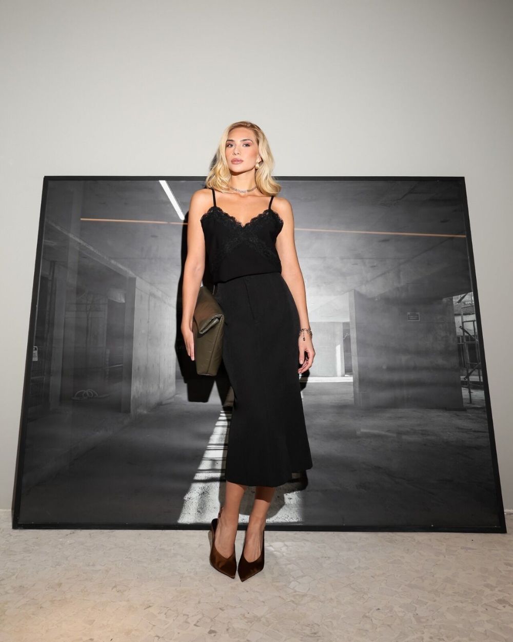 A Saia Lápis Midi Em Alfaiataria Com Fenda Doce Flor, foi todo confeccionado em viscose macio de toque suave, de tamanho midi, detalhes com vinco e fenda frontal, fechamento por zíper e botão. Essa saia é super delicado, possui um caimento maravilhoso no corpo, uma peça charmosa, atual e elegante.