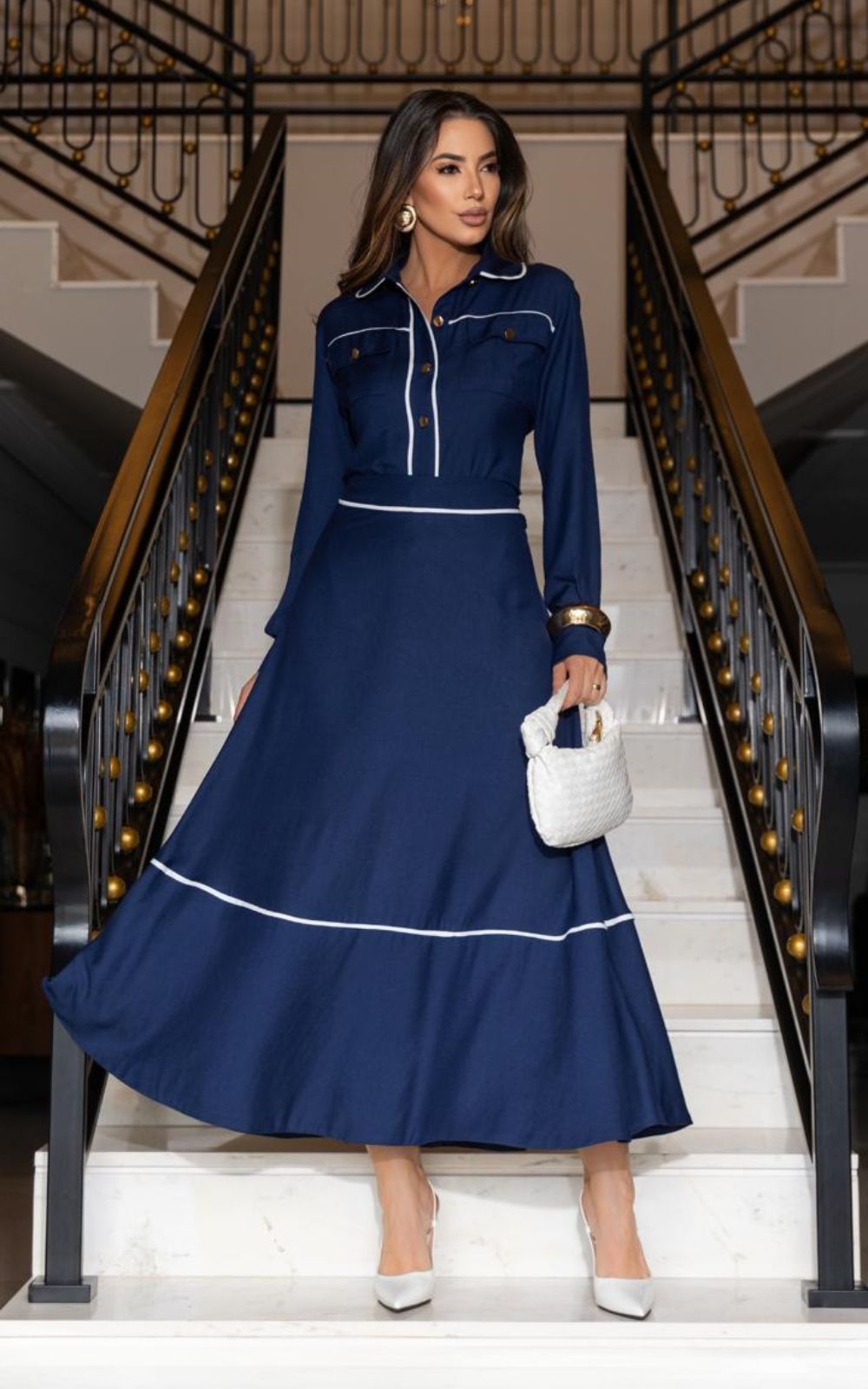 A Saia Midi Godê Em Viscose Com Detalhes Contrastantes, foi confeccionada em tecido viscose, macio de toque suave ao corpo, saia midi, godê, detalhes com pesponto contrastantes, possui forro e fechamento posterior por zíper, possui forro. Moderno e sofisticado, look sensação do momento!