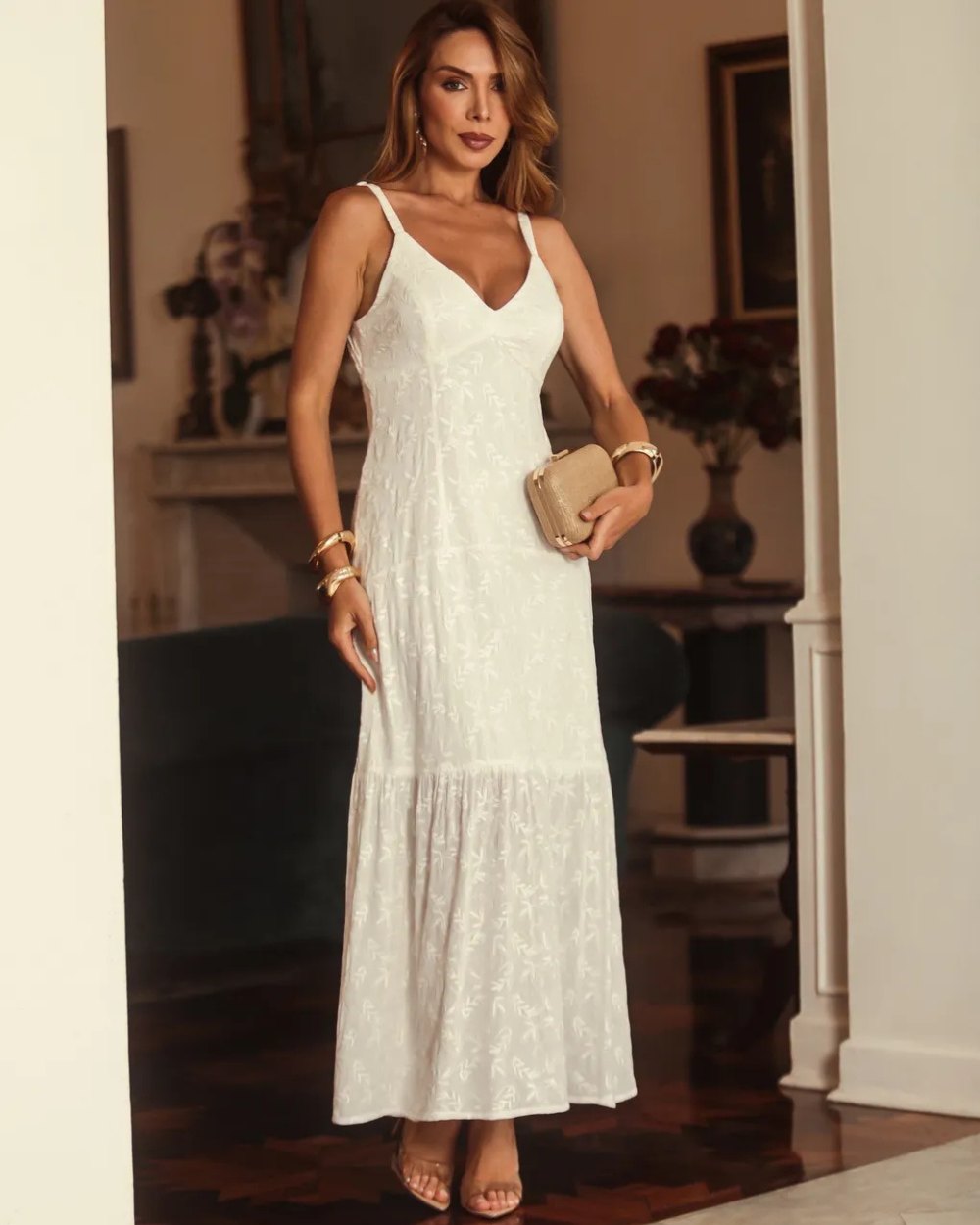 Vestido Longo Floral Bordado Donna Ritz